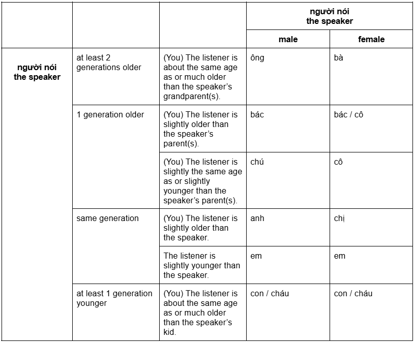 Check out the tables below to see the most common Vietnamese pronouns, along with when and how to use them naturally in conversation.