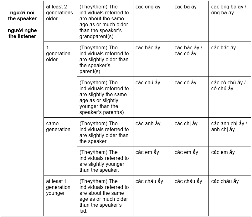 In the tables below, you’ll find examples of the most common third-person pronouns in Vietnamese, their meanings, and the subtle nuances that come with each.